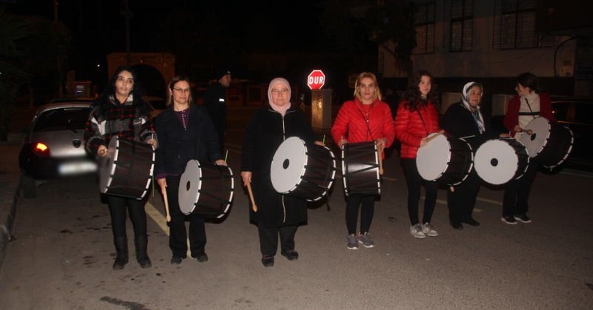 AA’nın haberine göre; Ramaza ayının ilk gecesinde ellerine davullarını alan kadınlar, mahalleri gezerek vatandaşları sahura maniler eşliğinde uyandırdı. Kadın davulculara, Erdemli Belediyesi Zabıta Müdürlüğü ekipleri de eşlik etti.